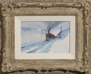 GAGNON THe Train Baie St Paul Oil FRAMED 5 x 7