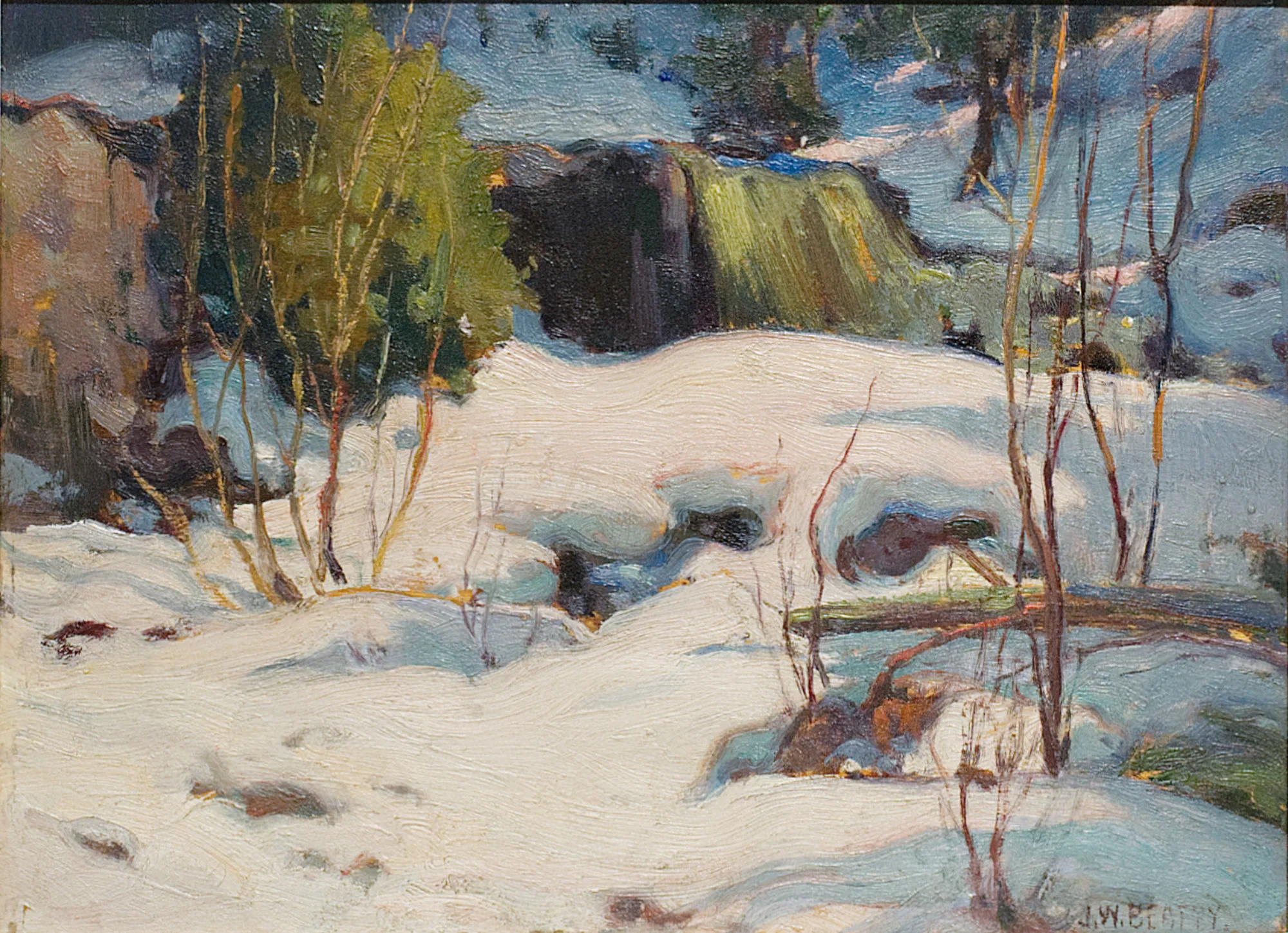 Beatty was among the first artists to paint Algonquin Park and other northern subjects directly from life, working outdoors in all seasons. His winter scenes — spare, structured, and attentive to the geometry of snow and tree — anticipated the broader movement toward a bold, national landscape aesthetic that would soon define Canadian art. As a contemporary and early influence on artists later associated with the Group of Seven, Beatty played a formative role in establishing landscape as the central vehicle for Canadian artistic identity.